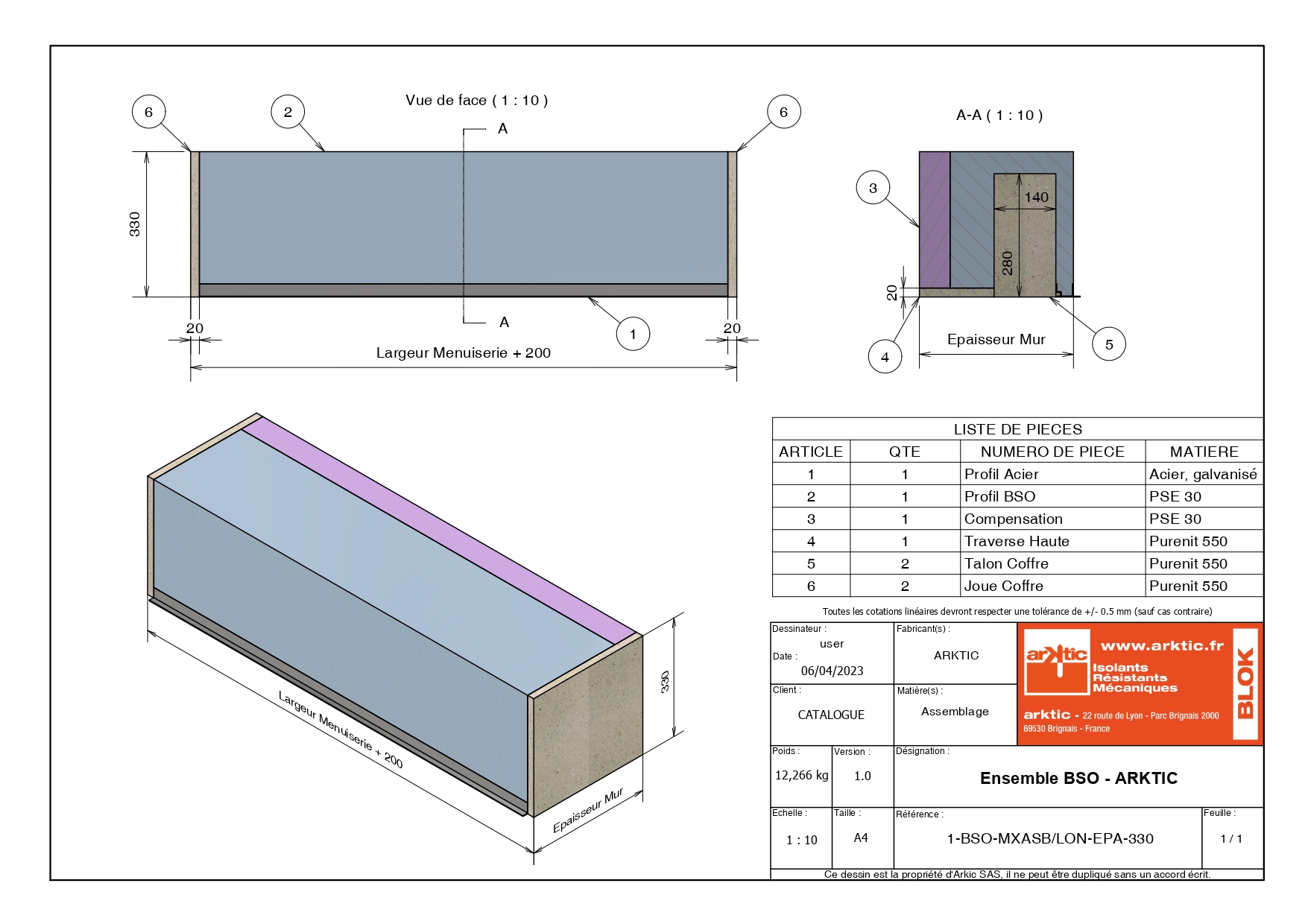 Toutes les pièces sont regroupées dans un assemblage certifié ARKTIC, conforme au dessin d’origine Arkic SAS.